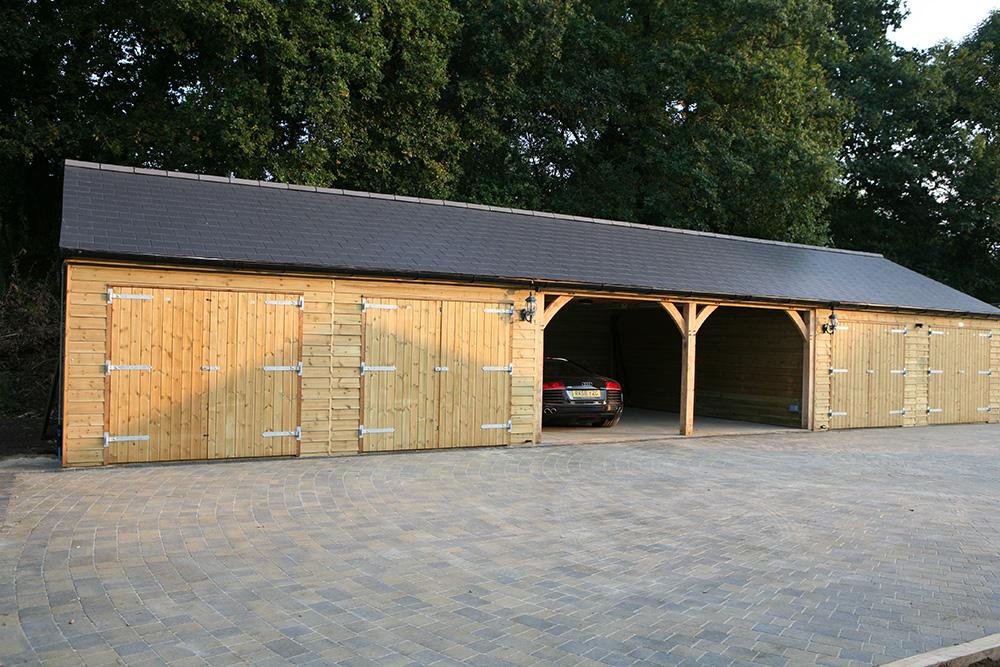 Accommodate your most demanding storage needs with our British made wooden five bay garages. These expansive structures are ideal for the serious car collector or those requiring a dedicated workshop, offering unparalleled capacity, durability, and a classic British design for the most discerning properties.