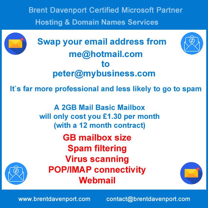 A professional email domain such as "info AT yourbusiness.com" uses your own domain name after the "@" symbol that strengthens your brand credibility and trust.