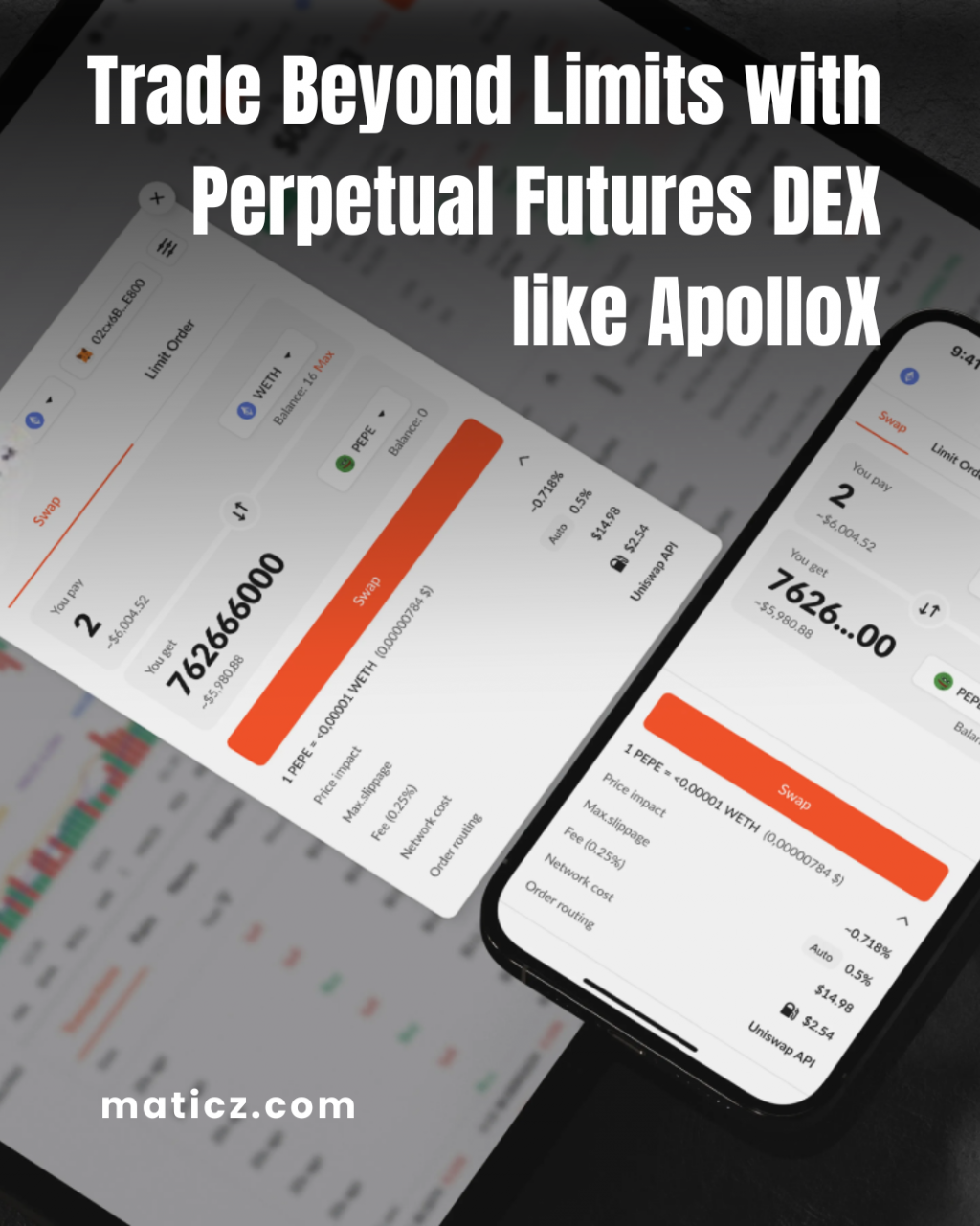 At Maticz, we present a next-generation Perpetual Futures DEX, similar to Apollox, that combines decentralization and precision. With ultra-low costs, real-time settlements, and up to 100x leverage, you may trade limitlessly and have complete control right from your cryptocurrency wallet. Our DEX, developed with speed, transparency, and user freedom at its core, enables traders to work more intelligently and securely in a completely decentralized environment. We offer substantial liquidity and an intuitive interface, providing seamless trading experiences that are suitable for both novice and experienced traders. With Maticz, step into the future of perpetual trading, where innovation drives control, and every move is truly yours.