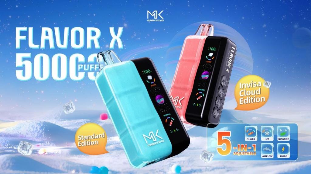 The future of disposable vapes is here with the Maskking Flavor X 50000—a device that combines cutting-edge technology, personalization, and discretion. Designed for vapers who want complete control and convenience, the Flavor X sets a new benchmark in the industry. With its 5-in-1 adjustable vape system and the revolutionary flavor x invisacloud edition, it goes beyond clouds to deliver a truly versatile experience.