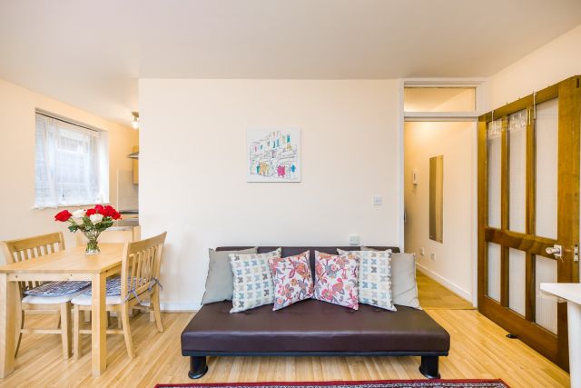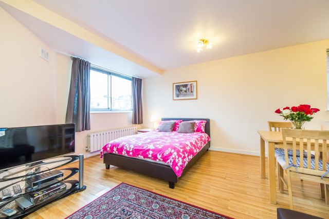 Spacious self contained double studio flat on Gloucester Road in Central London. The property comes fully furnished with wooden floors, double bed, comfortable sofa, table with chairs and LCD TV + Satellite. The kitchenette is fully-equipped with all modern conveniences – hob, washing machine, fridge and microwave. Studio also contains its very own bathroom.