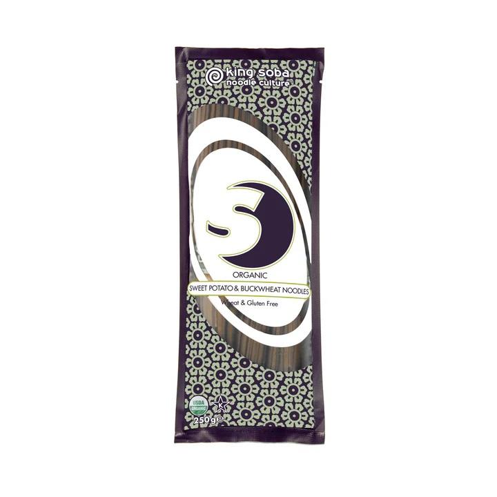 Upgrade your meals with King Soba Organic Buckwheat & Sweet Potato Noodles – a nutritious, gluten-free, vegan alternative packed with fiber, vitamins, and minerals. Made from a unique blend of organic buckwheat and sweet potato, these noodles offer a deliciously earthy taste and smooth texture, perfect for stir-fries, soups, and salads!