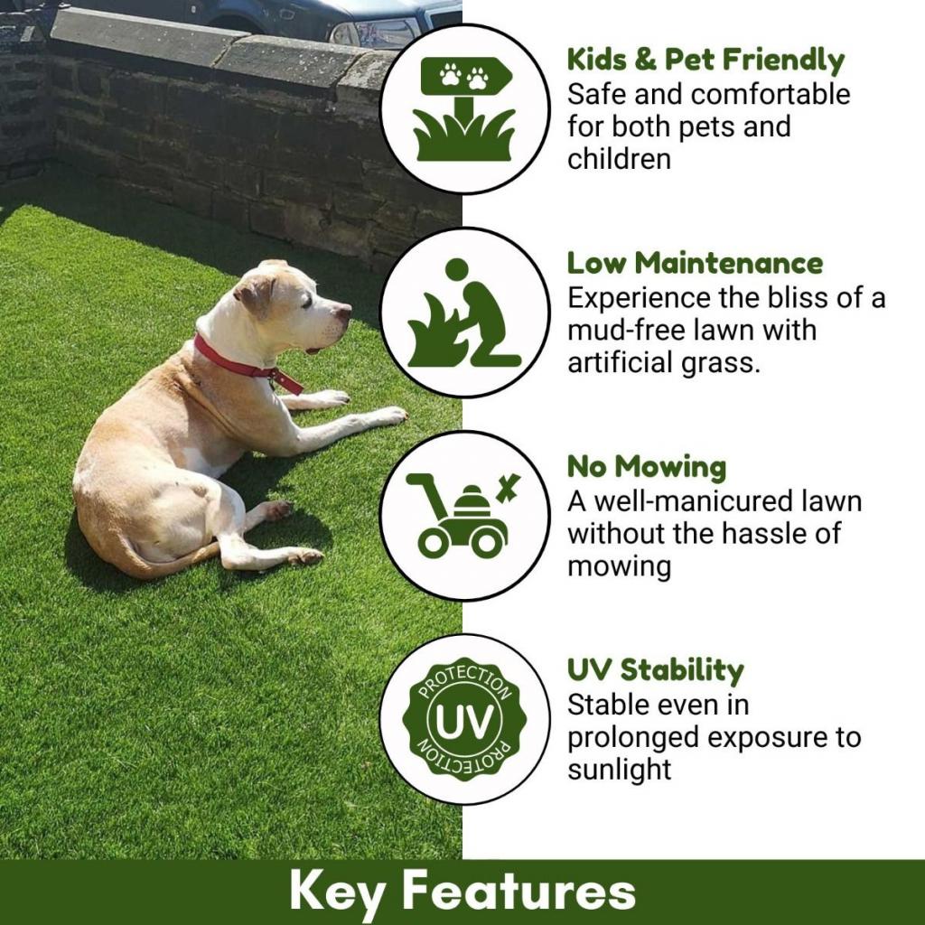Looking for a soft, comfortable lawn for your home? Velvet 40mm Artificial Grass offers a super plush feel with a natural green look that stays fresh all year. Perfect for kids and pets, it provides a safe and cozy space for play and relaxation. Durable, weather-resistant, and easy to clean, it handles daily use with ease. No mowing or watering needed—just enjoy your space. Upgrade your patio or garden today and enjoy hassle-free greenery!