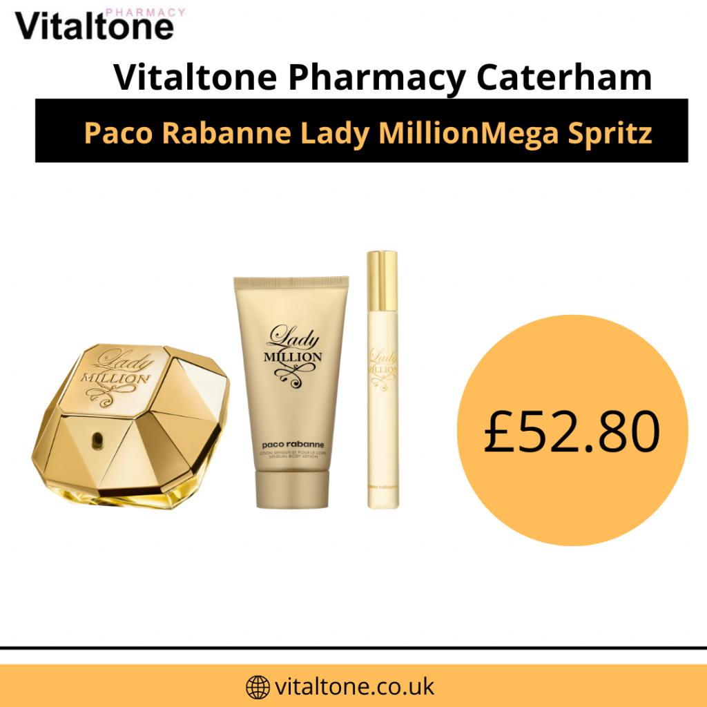 Paco Rabanne is a French fashion designer who has been designing perfumes and fragrances since 1967. The first fragrance he created was Paco Rabanne 1, which was a masculine fragrance. He has since created more than 20 perfumes and fragrances. This famous perfume is available in Lady Million Gift Set, which was launched in 2007. Paco Rabanne Lady Million Eau de Parfum is a luxurious, sexy perfume for women which is designed to make any woman feel a million dollars. The fragrance is inspired by wealth, power and gold, featuring top notes of Raspberry, Amalfi Lemon and Neroli, heart notes of Gardenia, African Orange Flower and Jasmine and base notes of White Honey Patchouli and Amber.