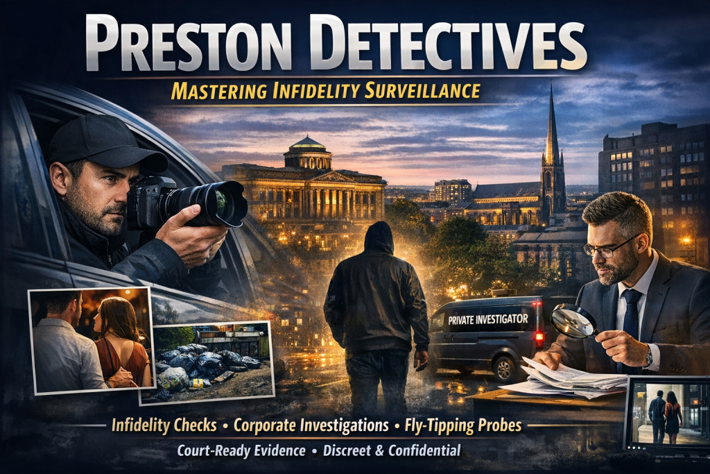 Preston investigators provide undercover infidelity checks, corporate due diligence, and fly tipping probes, ensuring Lancashire clients receive irrefutable, court-ready evidence with nationwide reliability and total confidentiality.